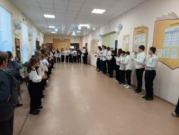 Сегодня, в понедельник 19 января, в школе по традиции прошла торжественная линейка, которая началась с выноса флага России под звучание гимна.Честь вынести и поднять флаг выпала команде девушек по баскетболу занявших 2 место.